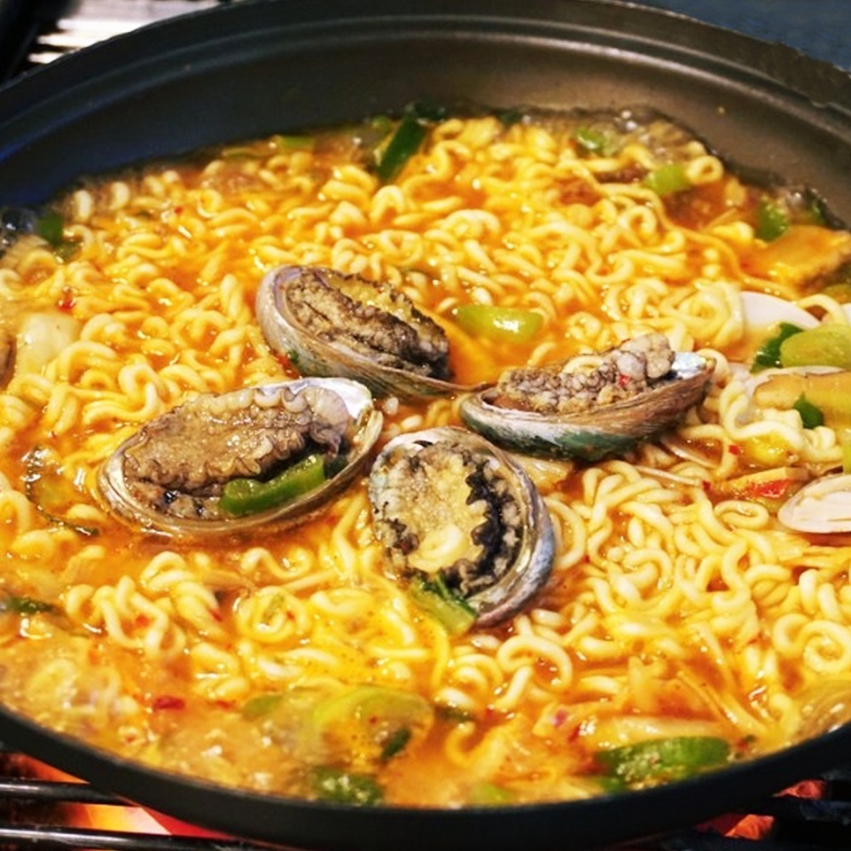 전복을 넣어 전복라면을 끓여 먹었습니다ㅎ 비싼 전복라면을 언제 또 먹어 보겠냐면서 국물맛 정말 예술이예요.